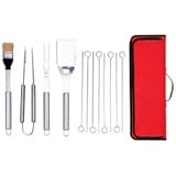 - Set includes: fork spatula tongs basting brush 8 skewers and storage case